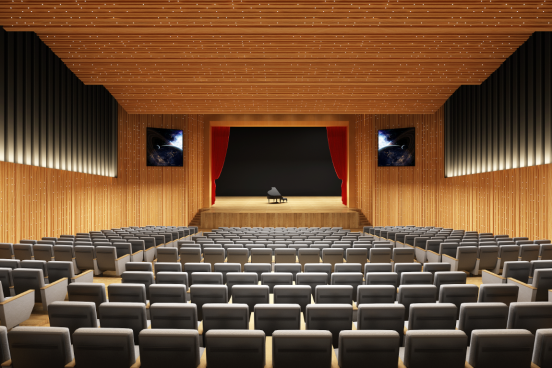 该项目为设计、施工一体化项目,项目地址位于365英国上市公司红湘校区校内,原建筑是一栋建于70年代的老建筑,原有建筑面积1243㎡,在原有建筑基础上东侧增加观众卫生间,西侧增加演出化妆候场部分、贵宾接待室,经过改造后建筑面积为1566㎡,观众厅上下二层可容纳780人,室内采用国内先进的技术对主要用房进行隔音、吸声、减噪。改造后礼堂使用功能上是集会议、娱乐、文艺演出、电影院为一体的多功能场所,适应多种会议、表演演出的需要,提供功能齐全、有优良视听条件、技术先进、设备完善的现代化演出场所,同时具备举行会议、歌舞演出、体育活动的功能。